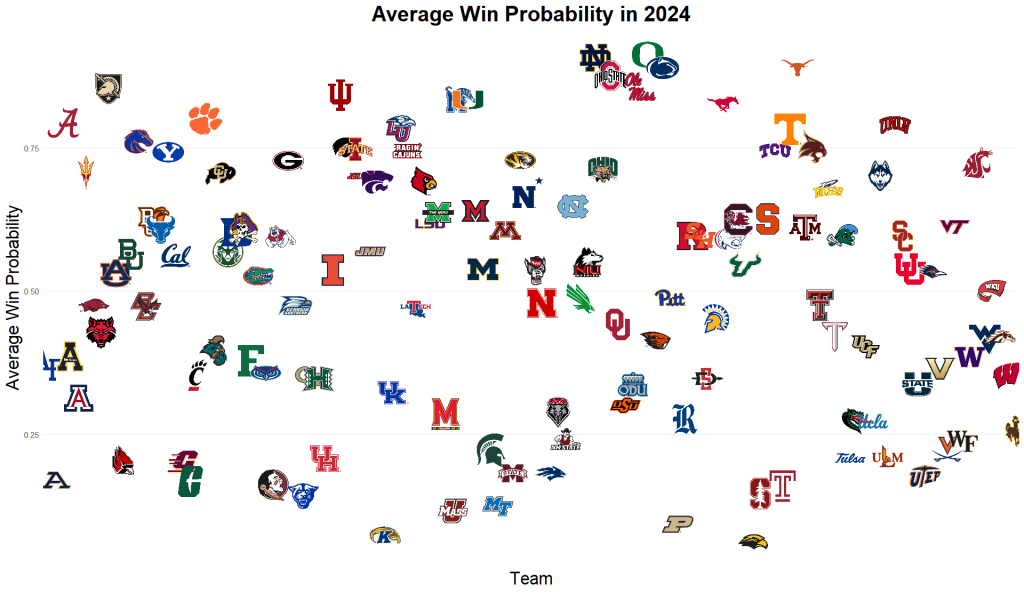 These results don’t necessarily indicate anything in the aggregate, as these games were close for a variety of reasons (one team playing up, another team playing down, turnovers, fourth downs, etc.), but it does suggest that these teams experienced at least some amount of good fortune. When evaluating an entire season (as opposed to just testing data), you can begin to evaluate if a team truly got lucky repeatedly and their record may suggest that they were better than in reality. For example, it is interesting that 2022 TCU is listed here twice, despite this dataset only containing 14 games from 2022 that fit the criteria.